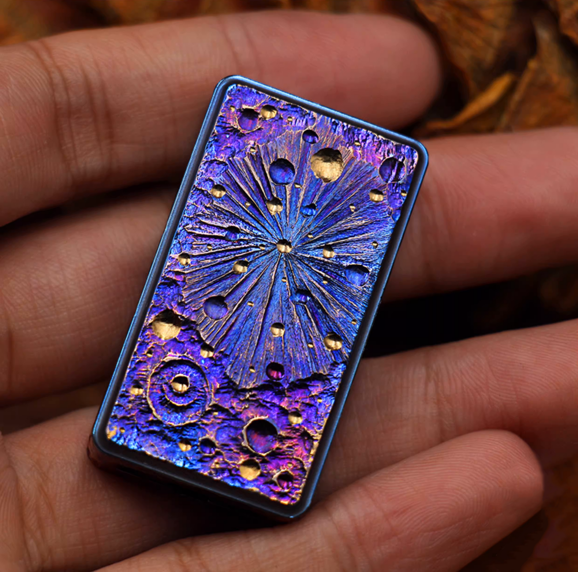 Please Note: > Each Starlight Slider is hand-engraved and heat-anodized by our master craftsmen. Due to the nature of the manual coloring process, the color gradients and pattern details are unique to every single piece.