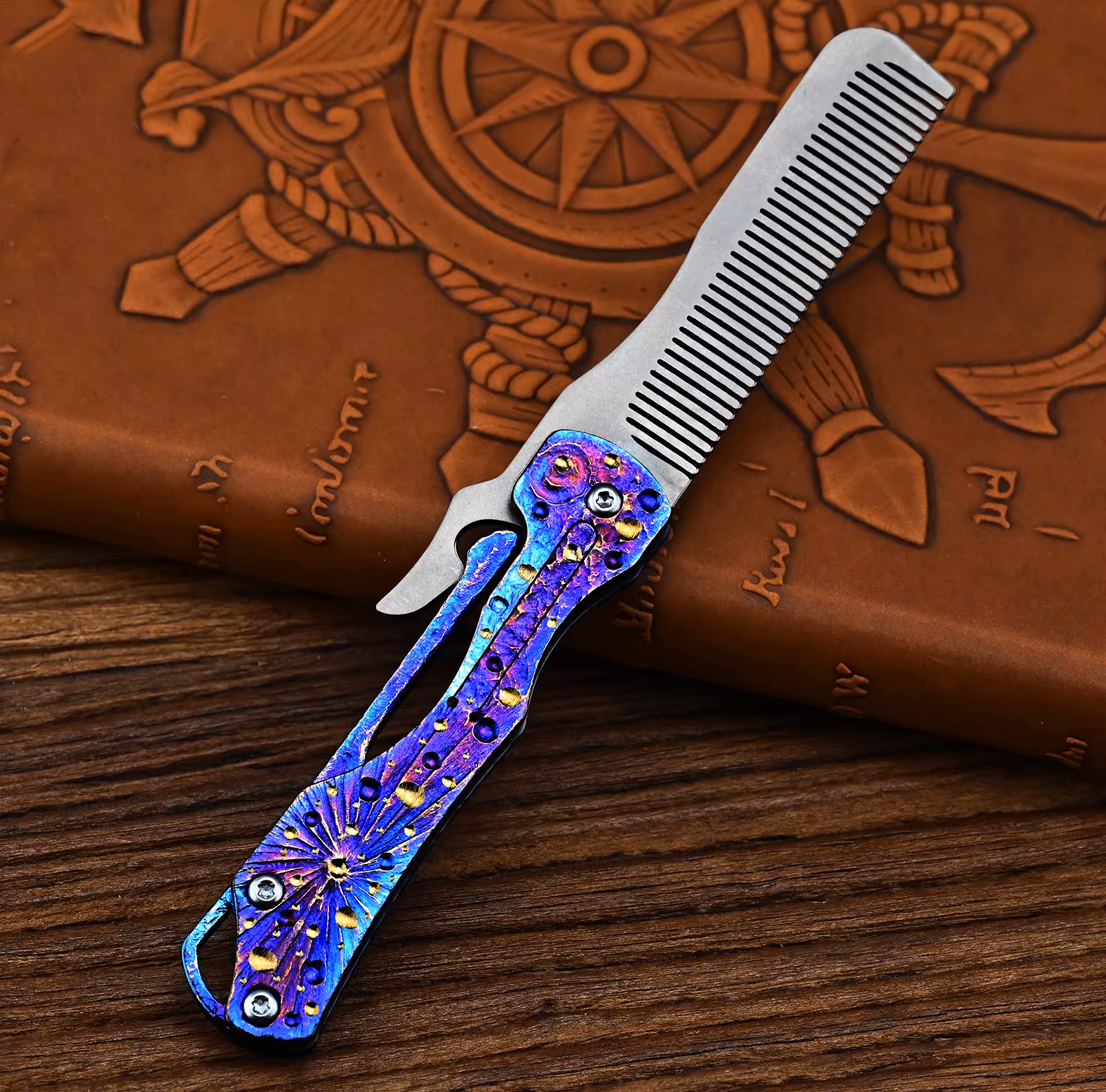 Please Note: > Each Titanium Folding Comb is hand-engraved and heat-anodized by our master craftsmen. Due to the nature of the manual coloring process, the color gradients and pattern details are unique to everyone.